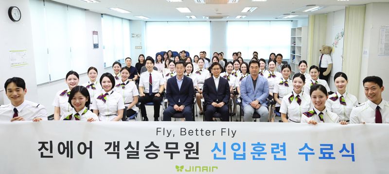 진에어는 지난 24일 서울 강서구 본사에서 신입 객실승무원 23명의 새로운 시작을 축하하는 신입 훈련 과정 수료식을 개최했다고 25일 밝혔다.