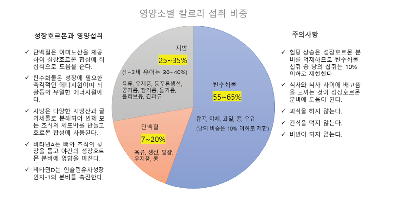 다만 탄수화물은 가려서 먹어야 한다. 밀가루, 흰쌀, 설탕, 과당 등은 오히려 성장호르몬 분비에 방해가 된다. 성장호르몬은 저혈당 상태일 때에 분비가 촉진되기 때문이다.
