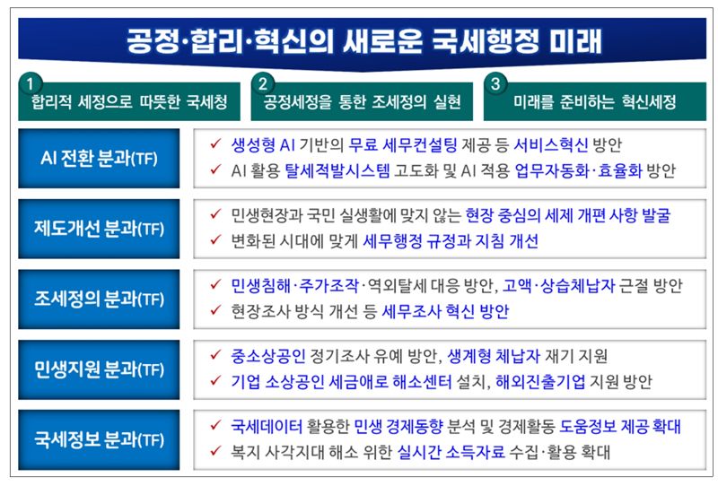 추진단은 △AI 전환 △제도개선 △조세정의 △민생지원 △국세정보 등 총 5개 분과로 구성된다.