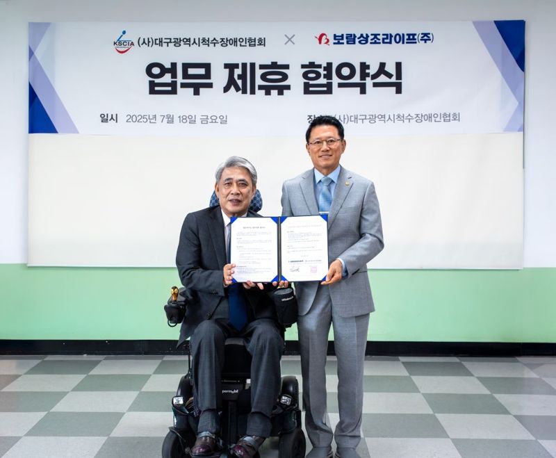 보람상조라이프는 최근 한국척수장애인협회 대구광역시협회와 업무협약(MOU)을 체결하고 700여명의 협회 회원을 대상으로 '보람550' 상품을 포함한 상조 서비스를 지원한다고 25일 밝혔다.