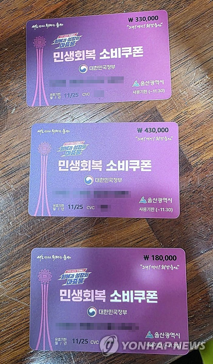 한편 울산에서는 지난 24일까지 나흘간 전체 소비쿠폰 발급 대상자의 절반이 넘는 59만 6203명에게 지급됐다.