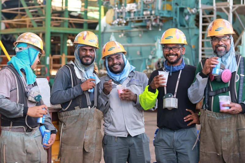 (거제=뉴스1) 강미영 기자 = 삼성중공업은 현장 근로자 온열 질환 예방을 위해 수박화채와 이온 음료를 즐기는 '시원해요, 감사합니다' 행사를 25일 실시했다고 밝혔다.