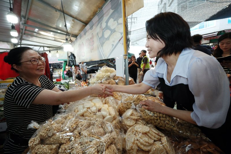 한편 김 여사의 일정은 최근 내정된 윤기천 제2부속실장이 맡고 있다. 윤 실장 내정 후 김 여사는 전날 경기 가평의 수해복구 현장을 비공개로 방문한 데 이어 이날 전통시장에서 소비쿠폰으로 물품을 구매하는 등 대외 일정을 보다 활발히 소화하는 모습이다. 윤 실장은 이 대통령의 성남시장 시절 비서실장을 지냈다.