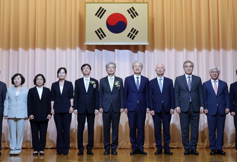 [서울=뉴시스] 이종희 기자 = 김상환 헌법재판소장과 오영준 헌법재판관이 공식 취임하면서 헌법재판소는 올해 4월 이후 석 달 만에 9인 완전체로 복귀했다.