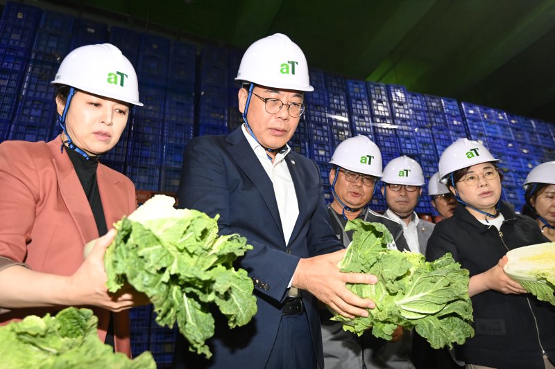 송언석 국민의힘 비상대책위원장 겸 원내대표는 25일 오전 경기 이천 aT 비축기지를 찾은 뒤 기자들과 만나 "(대통령실이) 세율인상을 조세정상화라고 강변하는건 동의하기 어렵다"며 "재작년 여야 합의로 1%포인트 인하한 법인세를 다시 올리자는 것은 국회를 무시하는 처사"라고 말했다.