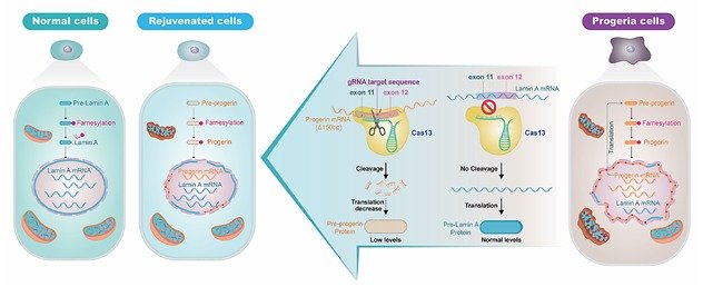 연구팀은 이 프로제린 유전자를 정상 유전자와 구별해 정확히 골라내는 RNA 가위(프로제린 gRNA)를 만들었다. 이 RNA 가위는 정상적인 단백질은 건드리지 않고 병의 원인이 되는 단백질만 정밀하게 제거할 수 있다.