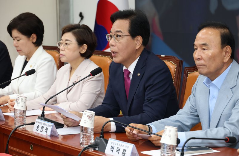 (서울=뉴스1) 서상혁 홍유진 기자 = 송언석 국민의힘 비상대책위원장 겸 원내대표는 28일 김건희 특검팀의 이준석 개혁신당 대표 압수수색에 "전당대회에서 대표로 선출된 직후에 압수수색이 이뤄진 점에 대해 국민과 함께 분노한다"고 비판했다.