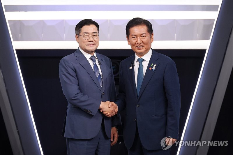 정 후보는 전날 TV 토론 후 기자들과 만난 자리에서는 이른바 '명심'(明心·이재명 대통령의 의중)이 박 후보에게 향한 것 아니냐는 지적을 일축하며 "이번 전당대회는 오직 당원, 오직 당심, 당원들이 결국 승부를 가릴 걸로 생각한다"고 말하기도 했다.