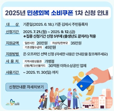 [김제=뉴시스]고석중 기자 = 전북 김제시는 민생회복 소비쿠폰 지급률 제고와 시민 체감 복지 강화를 위해 '찾아가는 신청 서비스'를 운영한다고 28일 밝혔다.
