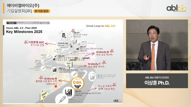 에이비엘바이오는 담도암 2차 치료제로 개발 중인 ABL001(토베시믹)의 임상 2·3상도 주목받고 있다고 밝혔다. ABL001은 현재 미국 컴퍼스 테라퓨틱스에 기술이전된 상태다.
