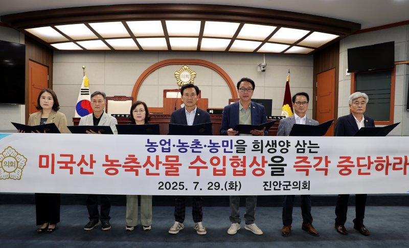 진안군의회는 29일 성명을 발표하고 "최근 진행 중인 한미통상 협상과 관련해 농업·농촌·농민을 협상의 희생양으로 삼는 협상안을 중단할 것"을 촉구했다.
