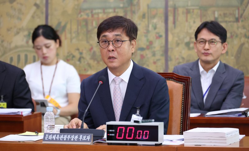 [서울=뉴시스]김주희 기자 = 최휘영 문화체육관광부 장관 후보자가 자녀 취업의 '아빠찬스' 논란에 대해 "지원한 것도 나중에 알았다"고 해명했다.