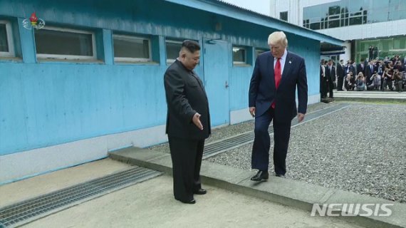그러면서 그는 "정전협정이 판문점에서 체결된 지 70여 년이 지난 뒤에도 남북한을 가르는 경계선이 38선 위의 비무장지대(DMZ)에 남아있다"며 "나는 첫 임기 중 현직 미국 대통령으로서 처음으로 이 DMZ를 넘어 북한에 갔다는 점이 자랑스럽다"고도 말했다.
