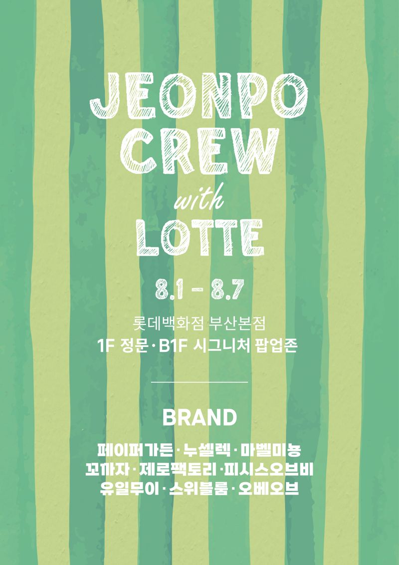 롯데백화점 부산본점은 여름 휴가철을 겨냥한 두 번째 대형 테마행사 '전포크루 with 롯데백화점'(사진)을 선보인다고 30일 밝혔다.