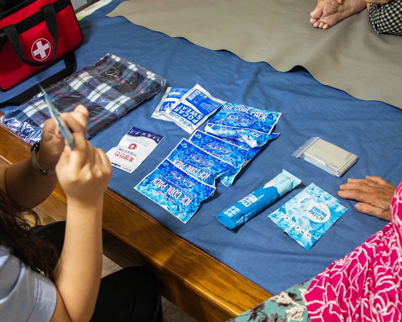 햇볕 차단용 은박 보온포, 응급 아이스팩 등 지원