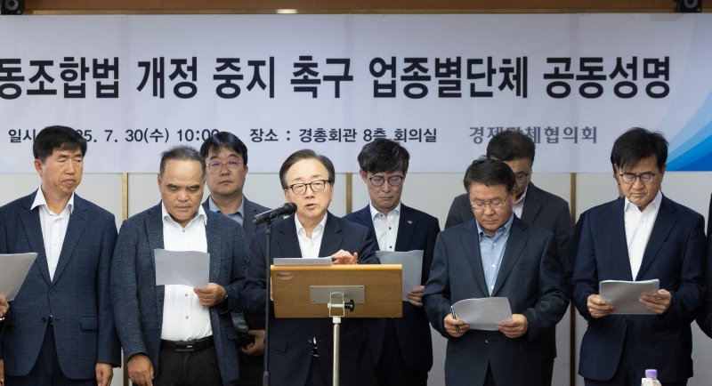 한국경영자총협회(경총)와 한국자동차모빌리티산업협회, 대한석유협회, 한국철강협회, 대한건설협회 등 13개 주요 업종별 단체는 30일 서울 마포구 경총회관에서 기자회견을 열어 "노란봉투법 통과 시 원청·하청 간 산업생태계를 붕괴시키고 우리 산업 경쟁력을 심각하게 저하시킬 것"이라면서 노조법 개정 중지를 촉구하는 공동성명을 발표했다.