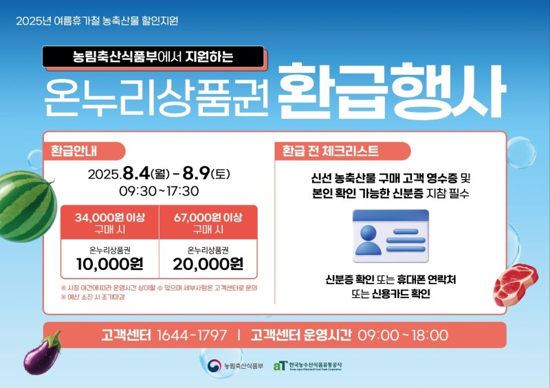 농림축산식품부가 주관하는 이번 행사는 전통시장에서 국산 농축산물을 구매한 소비자에게 최대 2만 원 상당의 온누리상품권을 환급하는 방식으로 운영된다.