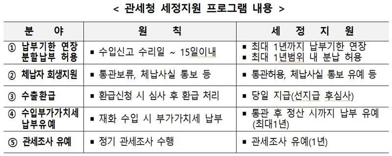 이밖에도 관세청은 납부기한 연장 등 세정지원 신청 절차도 간소화한다.