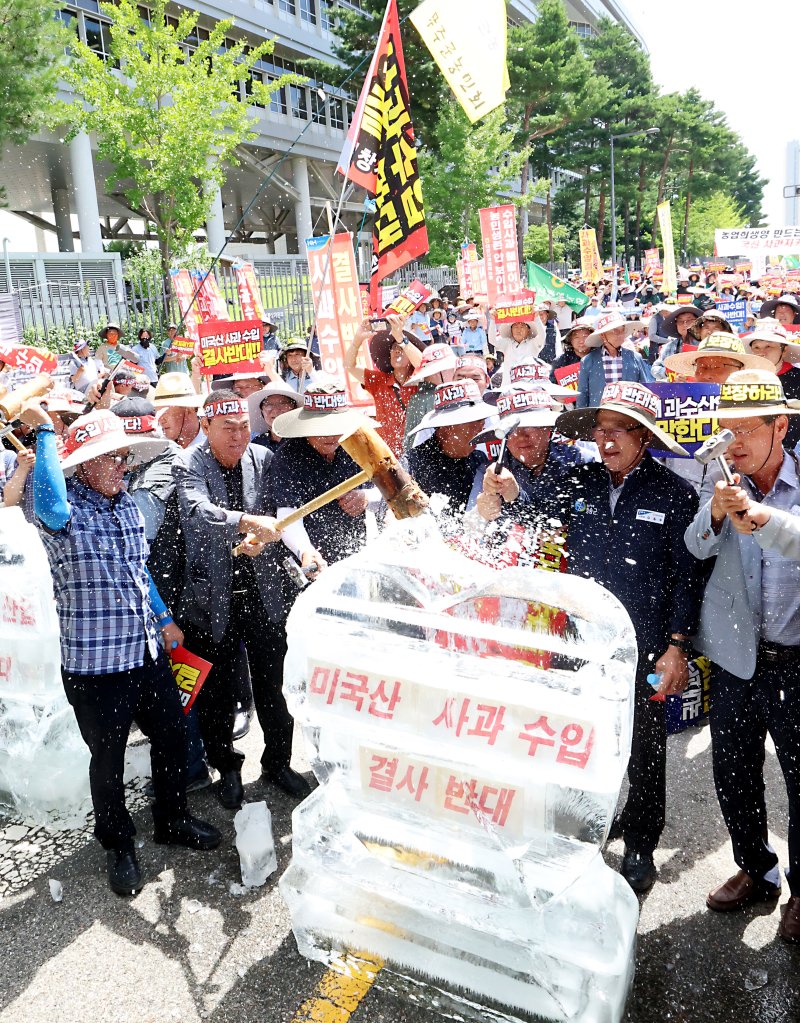 연합회는 이날 정부세종청사 앞에서 한국과수농업협동조합연합회, 농협사과전국협의회 등과 '미국산 사과 수입 반대 국민대회'를 열었다.