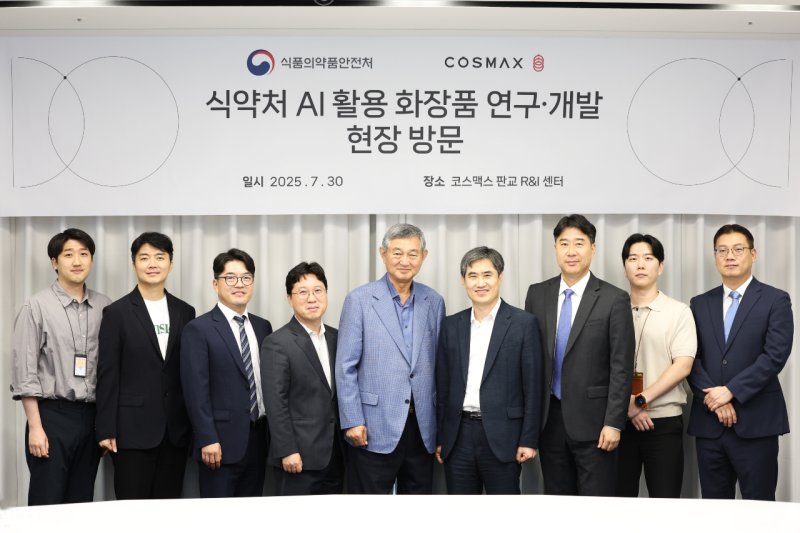 [서울=뉴시스]전병훈 기자 = 글로벌 화장품 ODM(연구·개발·생산) 기업 코스맥스는 신준수 식품의약품안전처 바이오생약국장이 경기도 성남시 판교사옥에 방문해 AI를 활용한 K뷰티 글로벌 활성화 및 미래 전략 방안에 대해 논의했다고 31일 밝혔다.