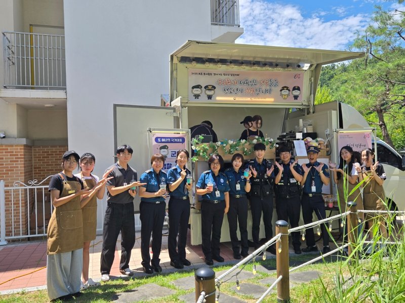 특히 유성구청소년수련관과 협업해 수련관의 '찾아가는 청소년 일일 카페'에 참여한 청소년들이 직접 음료 제조 방법을 배우고 제복근무자 응원 카드를 작성하며 푸드트럭 현수막 및 컵홀더 등 디자인 제작에 참여했다.