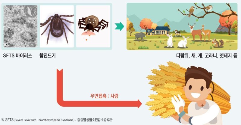 SFTS는 4월부터 11월까지 주로 발생하고 SFTS 바이러스를 보유한 작은소피참진드기에게 물린 후 6~14일 잠복기를 거쳐 38도 이상의 고열, 오심, 구토, 설사, 식욕부진, 혈소판 감소 등의 증상을 나타내는 제3급 감염병이다. 치명률이 높고 예방 백신과 치료제가 없는 탓에 특히 주의해야 하는 감염병이다.