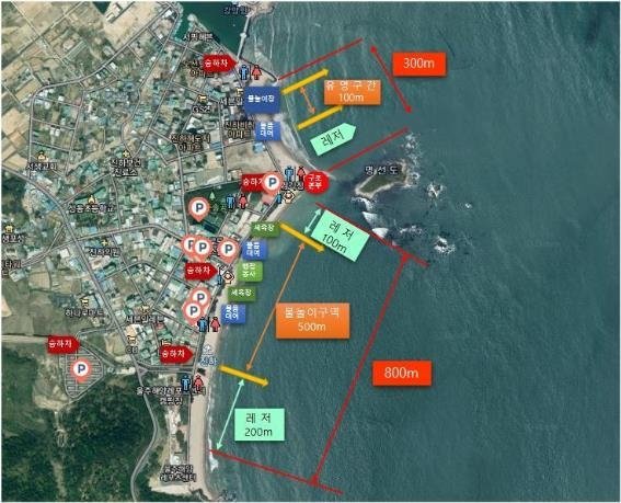 백사장 대형 물놀이장 운영…"인접 명선도는 야간 경관명소"