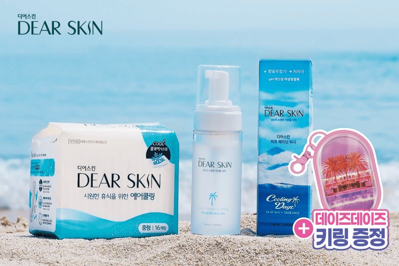 이번 프로모션에서 디어스킨은 1만원 이상 구매 고객을 대상으로 수영복 브랜드 '데이즈데이즈'와 협업한 야자수 키링을 선착순 증정한다. 또 지난 4월 출시한 신제품 '디어스킨 에어쿨링'의 원플러스원 및 최대 25% 할인 행사를 진행한다. 여성 청결제를 포함한 '디어스킨 락토 페미닌 워시' 스페셜 패키지도 선보인다.