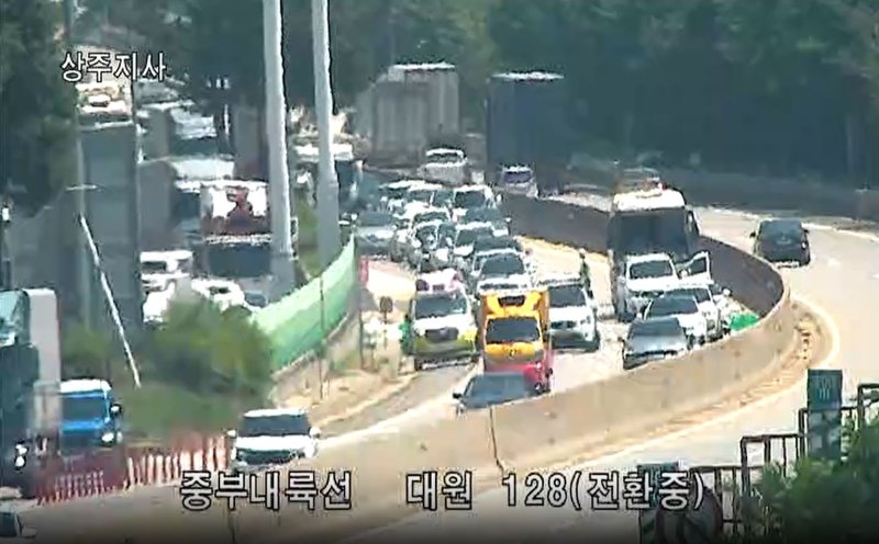 2일 경북소방본부에 따르면 전날 오후 1시 7분쯤 경북 구미시 옥성면 대원리 중부내륙고속도로 양평 방향 128㎞ 지점에서 고속버스가 1톤 포터를 추돌한 뒤 포터가 소나타, 그랜저, 아우디, QM6 등 승용차 4대를 잇달아 들이받은 6중 추돌사고가 발생했다.