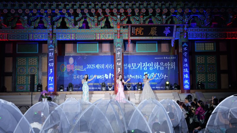 [서울=뉴시스] 고범준 기자 = 지난 2일 지리산 대화엄사 화엄원 특설무대에서 열린 제5회 지리산 대화엄사 모기장영화음악회에서 관객들이 공연을 보고 있다. (사진=지리산 대화엄사 제공) 2025.08.03. photo@newsis.com *재판매 및 DB 금지 [서울=뉴시스]고범준 기자 = 대한불교조계종 19교구 지리산대화엄사 교구장 우석스님이 2025년 제5회 지리산 대화엄사 모기장 영화음악회 “뮤지컬계의 신사 이건명 배우와 함께하는 뮤지컬 갈라”를 지난 2일 화엄원 특설 무대에서 문화사찰로 가는 이정표를 새롭게 제시 했다.