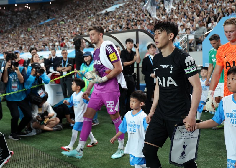 오후 6시 30분, 손흥민이 인터뷰를 위해 그라운드에 등장하자 상암벌은 터질 듯한 환호로 답했다. 경기 시작 40분 전, 토트넘 선수단과 함께 몸을 풀기 위해 그라운드를 돌며 관중석을 향해 양손을 흔들었고, 팬들은 이름을 부르며 그를 뜨겁게 맞이했다.