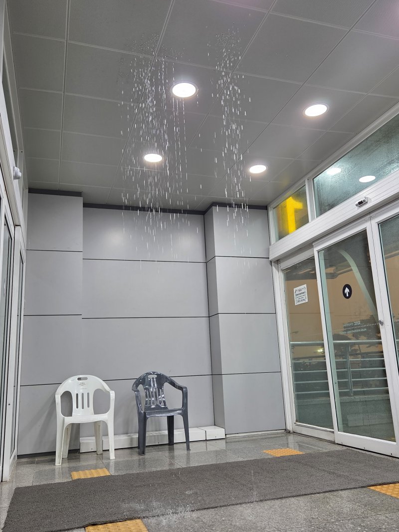 12·29 제주항공 여객기 참사 유가족협의회에 따르면 이날 오후 8시쯤 무안공항이 소재한 망운면 지역에 많은 비가 쏟아지면서 2층 지붕에서 비가 새기 시작했다.