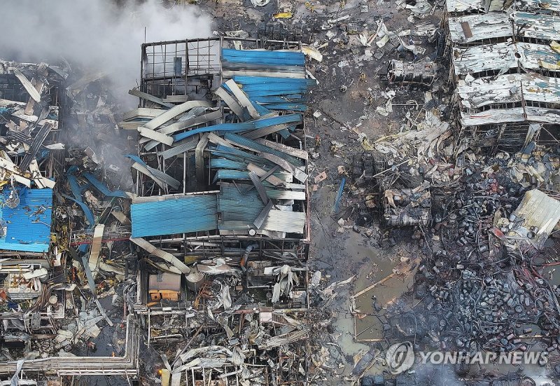 (영천=연합뉴스) 박세진 기자 = 3일 경북 영천 화장품 원료 공장에서 폭발 사고로 난 큰불이 9시간 만에 진화됐다.