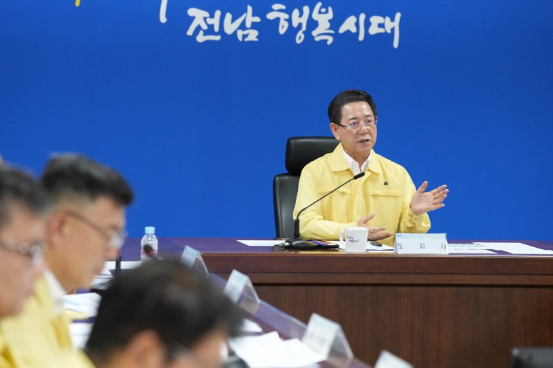 (무안=뉴스1) 전원 기자 = 김영록 전남도지사는 3일 오후 9시 호우 대처 상황 점검 회의를 열고 극한호우로 침수 피해를 본 이재민들을 위해 쉼터 운영, 구호 물품 배부 등 현장 조치를 서두를 것을 긴급 지시했다.