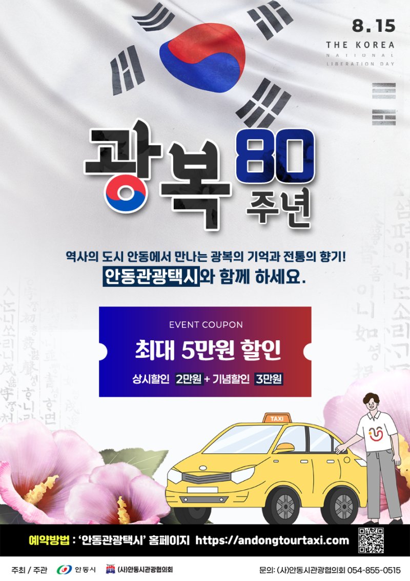 (안동=뉴스1) 신성훈 기자 = 경북 안동시가 광복 80주년을 맞아 4일부터 오는 31일까지 관광택시 요금 할인 이벤트를 진행한다.