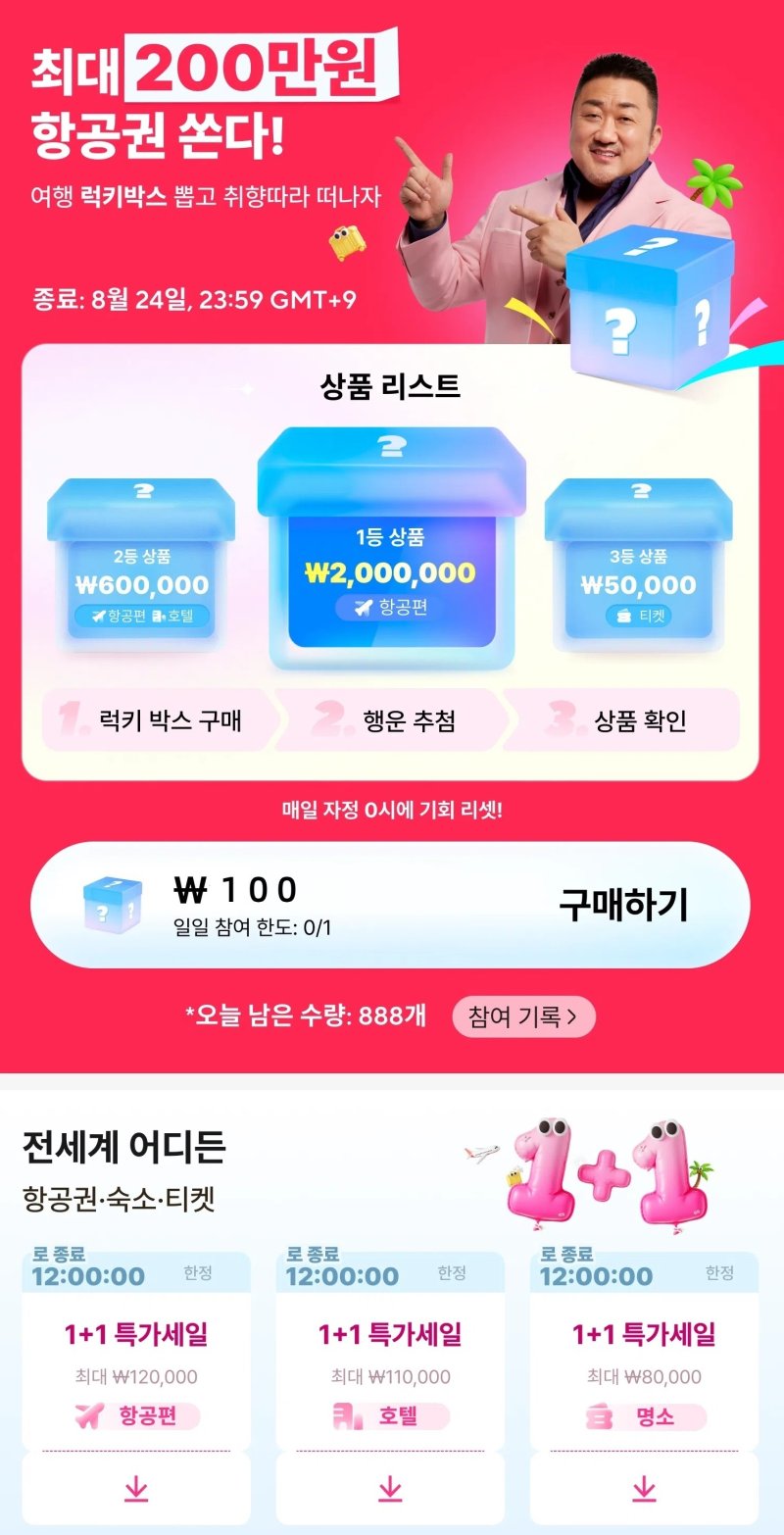 행사 기간 동안 100원으로 참여할 수 있는 '럭키박스' 이벤트가 진행된다. 1등(14명)에게는 200만 원 상당의 항공권, 2등(70명)에게는 50만 원 상당의 항공권과 10만 원 숙박권이 제공된다.