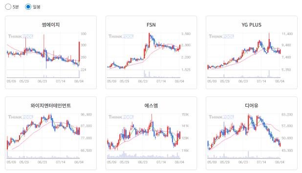 ※ [엔터] 이슈 관련 종목 : FSN, 와이지엔터테인먼트, YG PLUS, 에스엠, 디어유