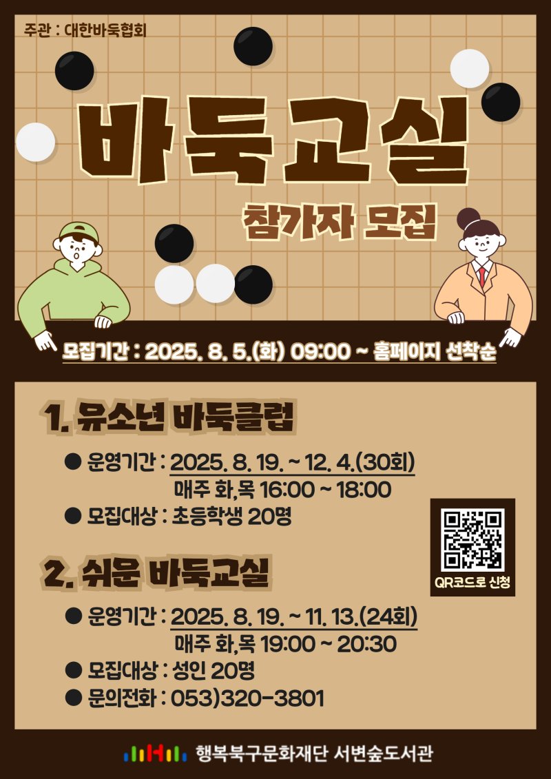 쉬운 바둑교실은 성인 대상으로 입문 및 초심자도 쉽게 접할 수 있는 바둑을 가르치는 프로그램이다.
