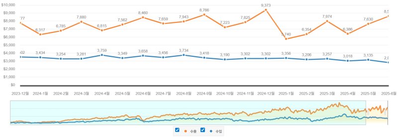 4일 ‘2025년 상반기 수출입 실적’에 따르면 도는 수출 427억 달러, 수입 188억 달러, 무역수지 239억 달러 흑자를 달성, 전국 17개 시도 중 무역수지 1위를 기록했다.
