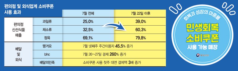 소비진작을 위한 정부의 민생회복 지원금 지급이 2주를 지나면서 소비쿠폰 사용을 둘러싼 '신(新) 소비행태'가 나타나고 있다. 배달앱이 소비쿠폰 사용처에서 제외되면서 코로나 이전의 '대면 결제'가 부활되고, 가맹방식의 편의점이 신선식품 등 장보기 채널로 급부상하고 있는 것이다.