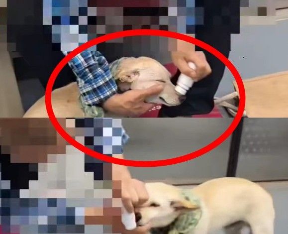 개는 견디기 힘들다는 듯 열차 안에 있던 다른 사람들 곁으로 몸을 피했다. 하지만 남성은 다시 개를 끌고 오더니 다시 물파스를 바르기 시작했다. 개는 끌려가면서도 가지않으려고 저항해봤지만 헛수고였다.
