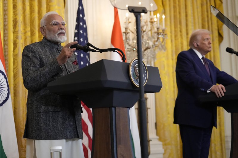 [서울=뉴시스] 김승민 기자 = 도널드 트럼프 미국 대통령이 인도에 대해 관세율 인상을 시사하며 러시아산 석유 구매 축소를 압박했다. 인도는 "비합리적"이라고 즉각 반발했다.