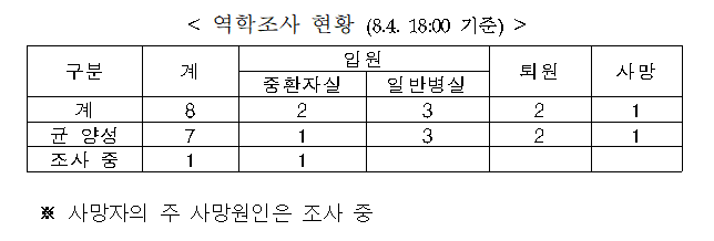 8명 중 사망 1명·중환자실 2명·일반 병실 3명