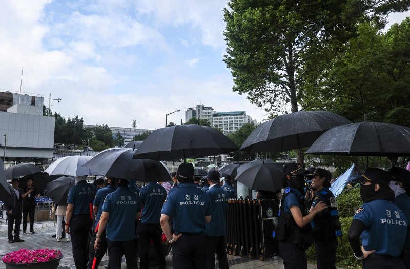 [서울=뉴시스]최은수 기자 = 5일 화요일은 전국이 흐린 가운데 대부분 지역에 소나기가 내리겠다. 낮 최고 기온은 35도까지 오르며 무더위가 이어지겠다.