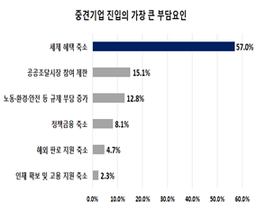중견기업 후보군은 대부분 독자적인 경쟁력을 바탕으로 20년 이상 장기간에 걸쳐 지속적인 성장을 이뤄 온 강소기업들이 주를 이루고 있지만, 중견기업 진입에 대해선 응답기업의 63.9%가 여전히 부담을 크게 느끼고 있는 것으로 확인됐다. 이는 정책지원의 사각지대로 향한다는 부정적 인식이 크게 작용하고 있기 때문인 것으로 풀이된다.