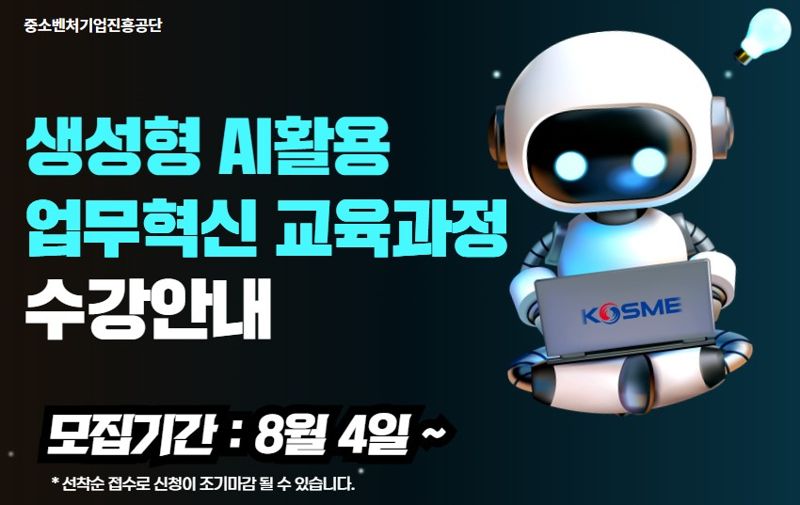 중진공은 중소기업 재직자의 AI 활용 능력 강화를 위해 ‘생성형 AI활용 업무혁신 클래스’를 신설하고, 지난 4일부터 참여자를 모집 중이라고 5일 밝혔다. 이번 교육은 단순 사용법을 넘어 업무 데이터 기반의 실습을 통해 실무 적용력을 높이는 데 중점을 뒀다.