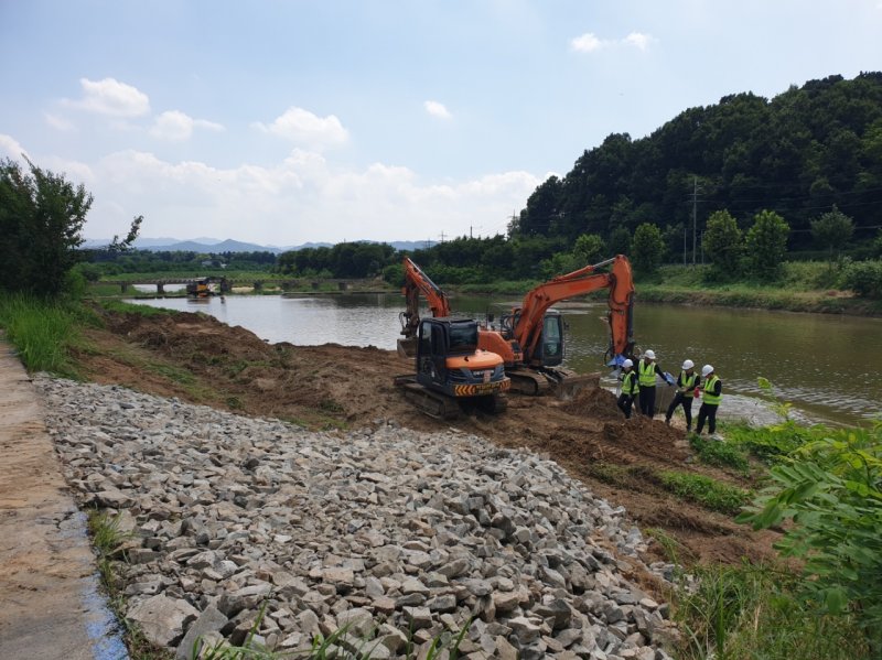 한국수자원공사 충주권관리단은 이날 오전 7시부터 굴착기 등을 투입해 긴급 복구 작업을 벌이고 있다.