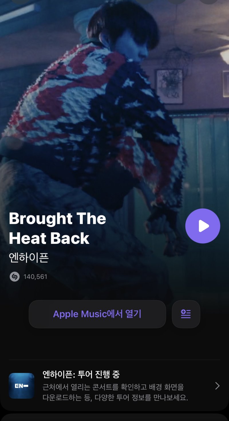 이 밖에도 애플 뮤직의 엔하이픈 콘서트 세트리스트 '엔하이픈스 월드 투어 '워크 더 라인'(ENHYPEN's "WORLD TOUR 'WALK THE LINE'" Set List)'를 통해, 콘서트 전 엔하이픈의 공연 세트리스트를 복습할 수도 있다.
