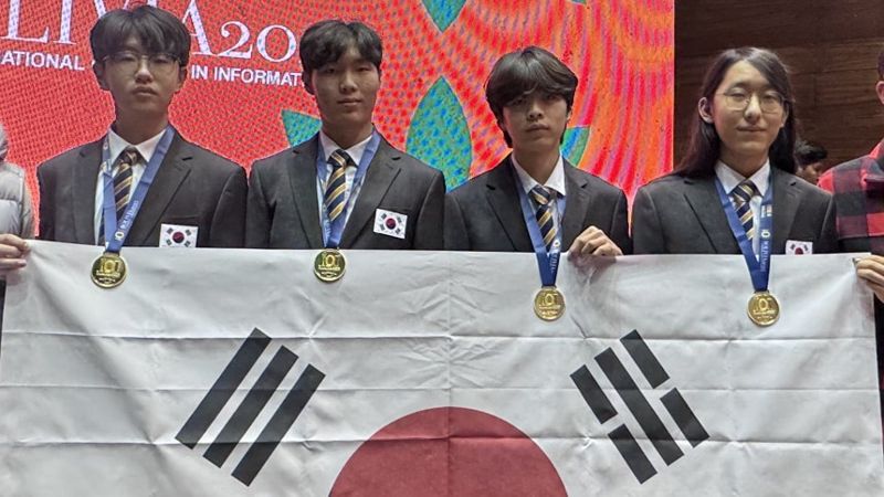 5일 과학기술정보통신부와 한국과학창의재단에 따르면 지난달 27일부터 이달 3일까지 열린 이번 대회에서 한국 대표단의 변재우(경기과학고 2), 우민규(서울과학고 3), 이유찬(경기과학고 3), 정민찬(한국과학영재교 2) 학생이 금메달을 받았다.
