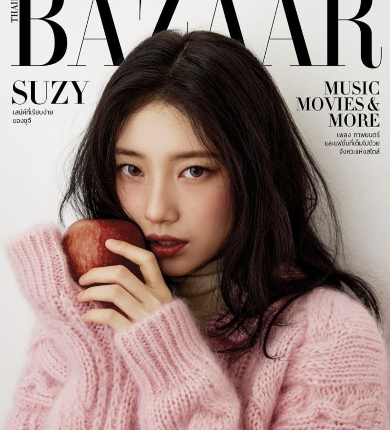화보에서 수지는 사과를 든 채 매혹적인 표정으로 카메라를 응시하고 있다.